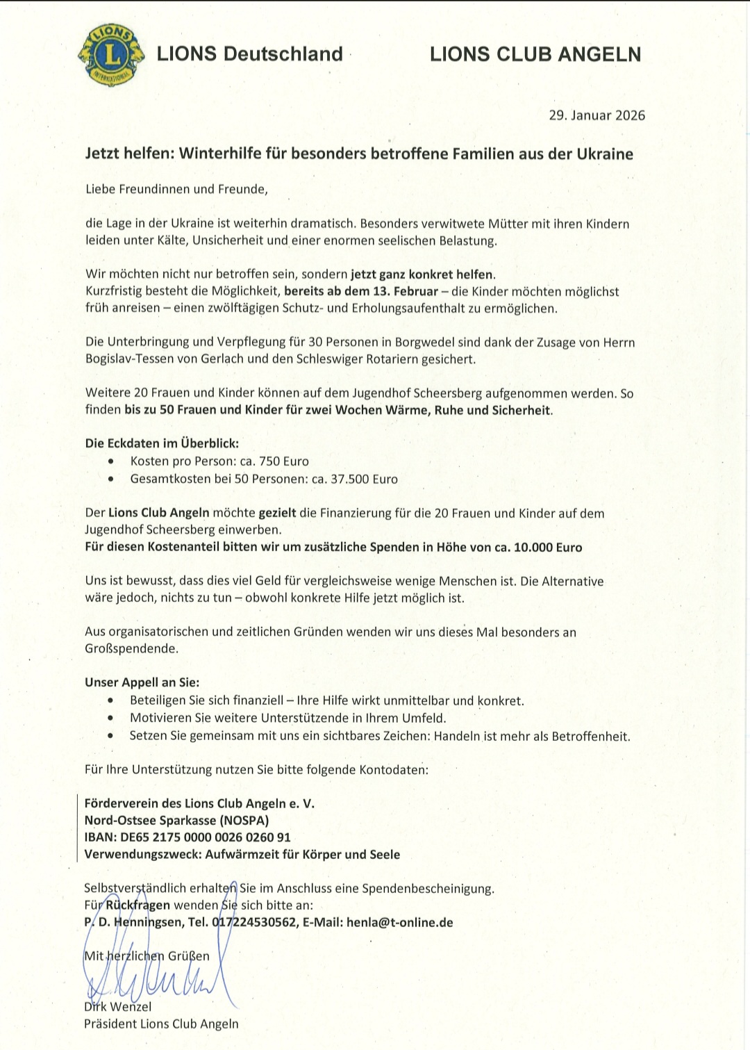Wir danken unseren Unterstützern vielmals! Winterhilfe für besonders betroffene Familien aus der Ukraine
